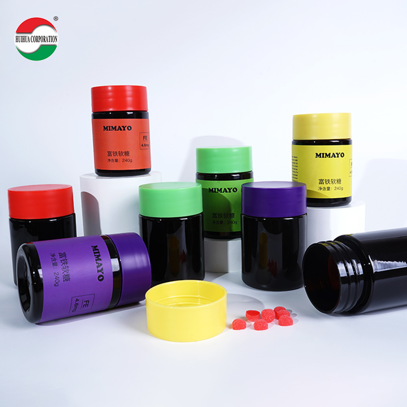 Huihua Packing OEM Etykietowanie Czarne Unikanie Światła 240g Puszka PET Plastikowa Puszka na Miękkie Cukierki Słodkie Produkty Zdrowotne